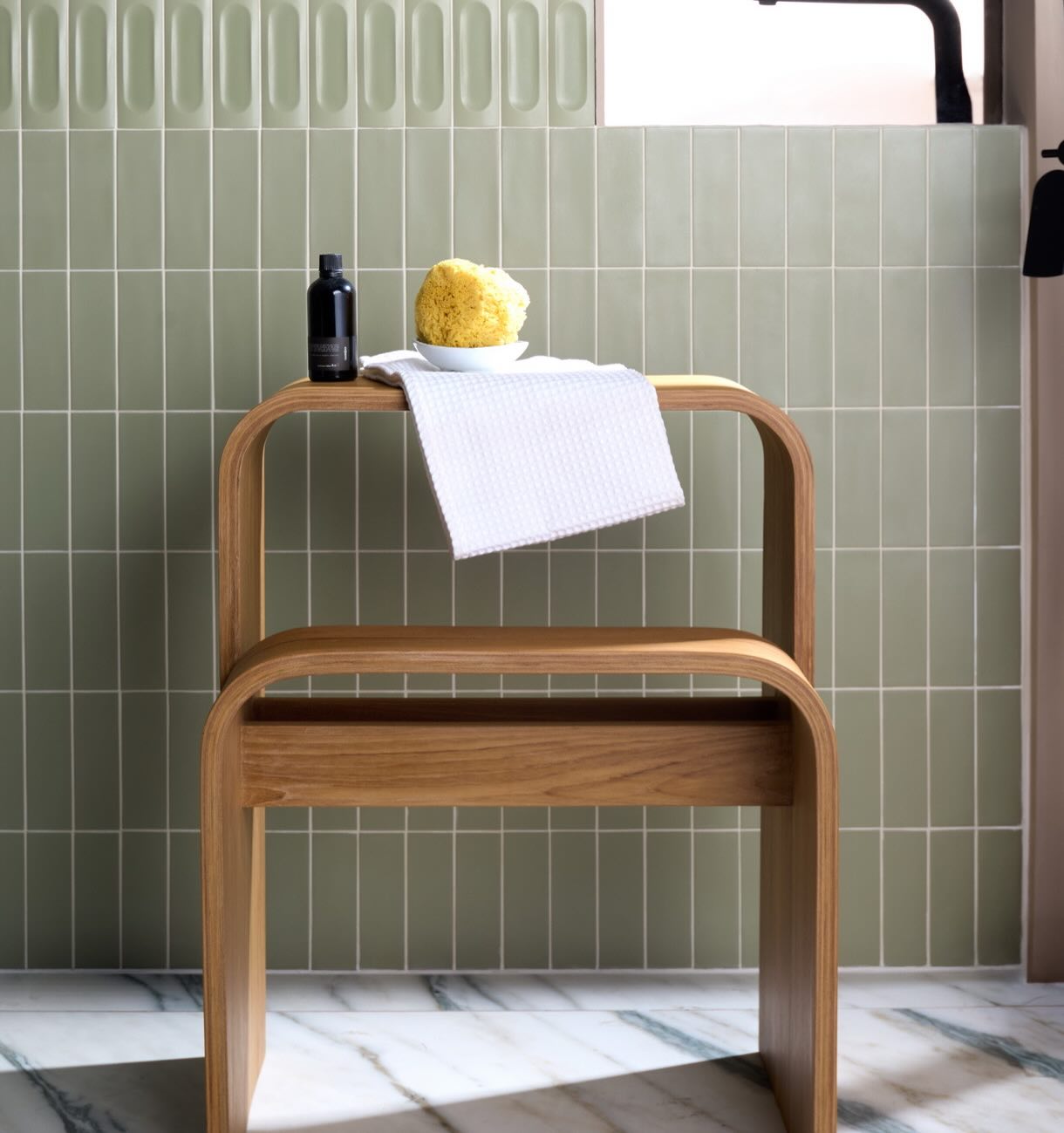Care Seat sits slightly higher than a standard chair, helping you lift your foot with less bending and better stability. Usable for putting on shoes or as a bathing seat.