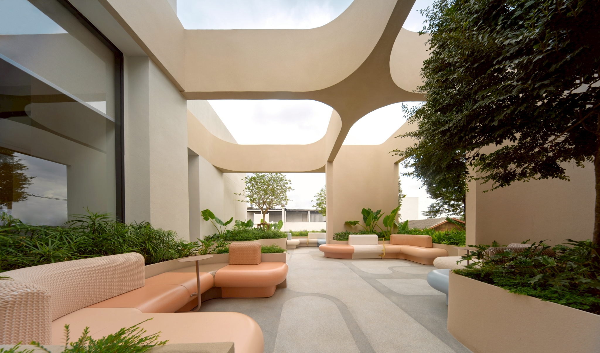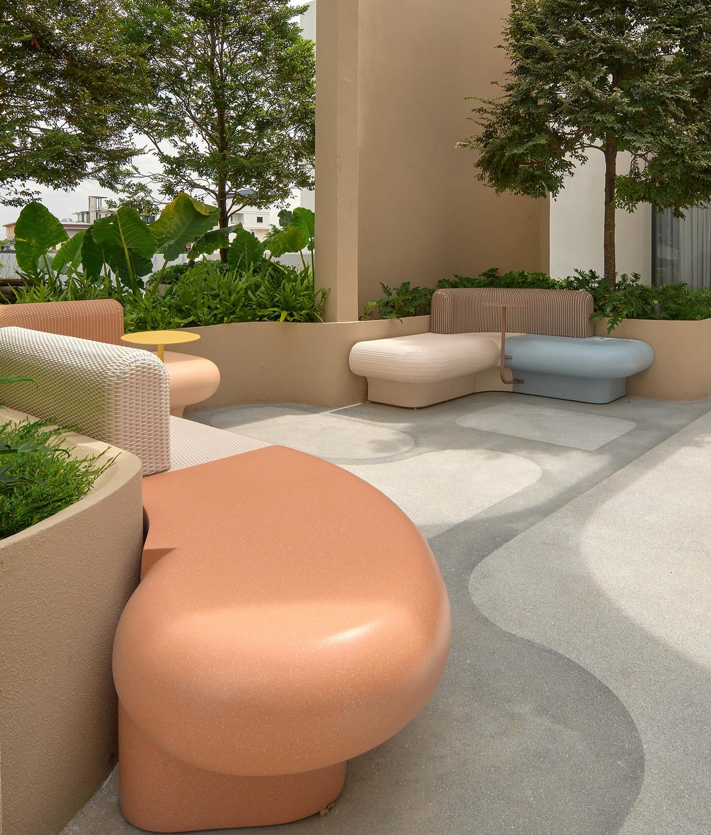 With soft curves, woven textures, and warm pastel tones, the pieces create an atmosphere that feels both natural and lively, encouraging people to enjoy the outdoors with ease and positivity.