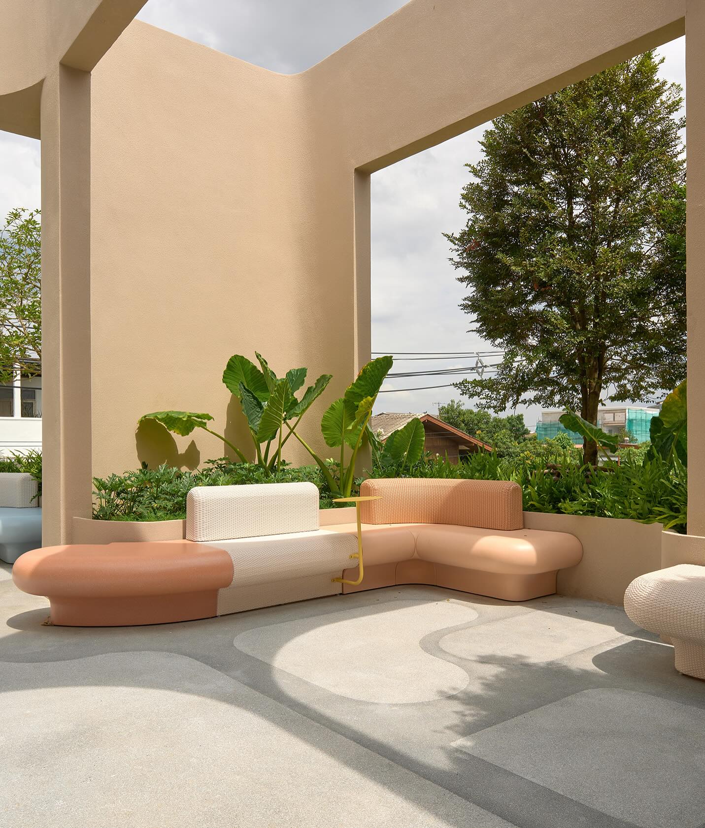 Located within Think Yard at COBE Ladprao–Sutthisan, this public furniture collection is conceived as a modular system of seats, backrests, and small tables that can be freely composed and rearranged.