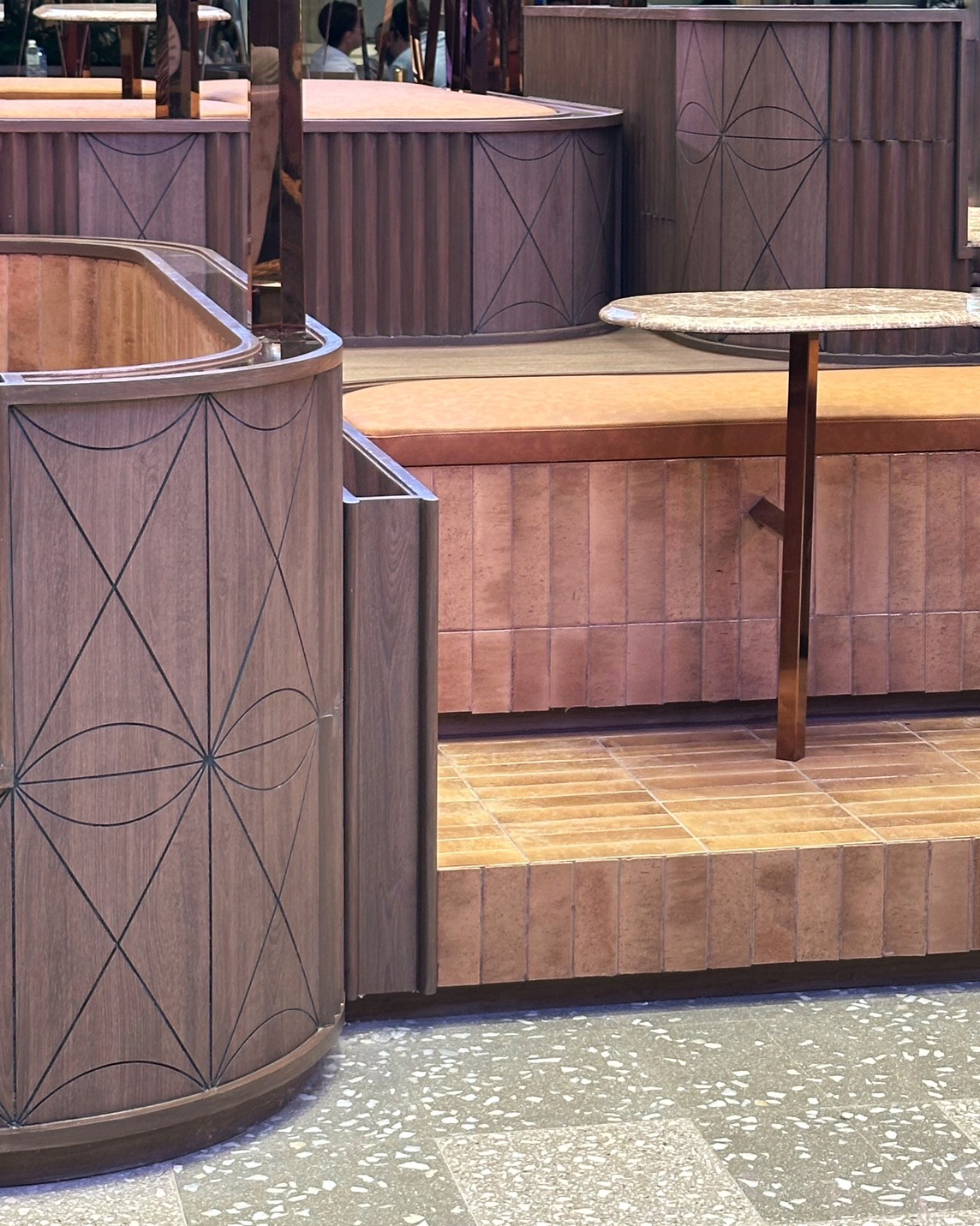 The space accommodates various everyday uses such as temporary seating, dining breaks, and casual meeting points, integrating naturally into the flow of daily life.