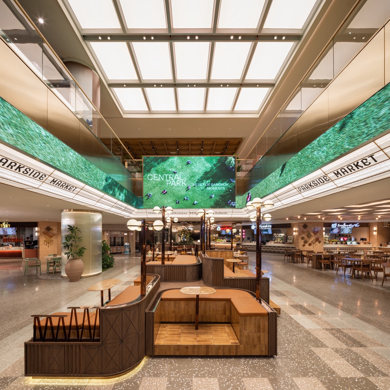 Bangkok’s old neighborhoods were once filled with the charm of standalone cinemas, vintage lampposts, and vibrant public life. These memories inspire a tiered seating platform that reflects the city’s past culture of movie-going and urban gathering.